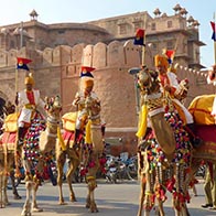 Organized by the Department of Tourism, Art & Culture, Rajasthan, The Camel festival is held in Bikaner, in the month of January every year. This exiting and lively festival begins with a colorful procession of bedecked camels. Famous folk artists from Rajasthan perform and entertain tourists. Camel races and other competitions are organized during the festival.