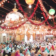 The largest Muslim Fair in India, Urs is held in the holy town of Ajmer. It is held in the memory of Khwaja Moinuddin Chisti (Rh.), a respected Sufi saint popularly known as Gareeb Nawaz because he devoted his entire life for the services of mankind. More than five lakes devotees gather from all parts of the subcontinent to pay homage to the Khwaja Sahib on his Urs (death anniversary) during the first six days of Rajab (seventh month of the Islamic calendar). Mehfils & Qawwalis are held during the Urs.